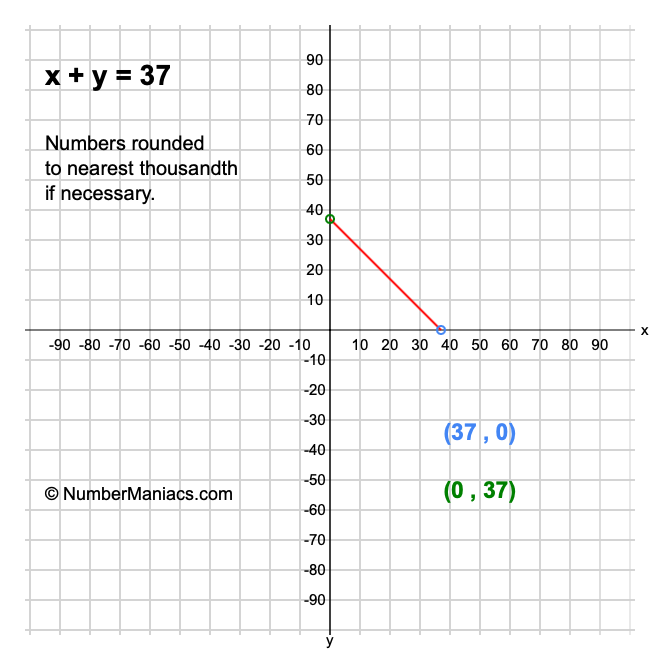 Finally, we will solve x + y = 37 for x and also for y, then calculate and show you the solution for the slope of x + y = 37.