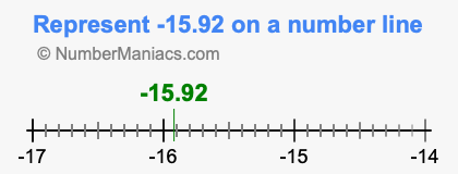 Representing negative 15.92 on the number line is a little more tricky. To locate -15.92, we start from 0 and go 15.92 to the left to locate -15.92 on the number line. Below is an illustration showing you where negative 15.92 is on a number line.
