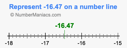Representing negative 16.47 on the number line is a little more tricky. To locate -16.47, we start from 0 and go 16.47 to the left to locate -16.47 on the number line. Below is an illustration showing you where negative 16.47 is on a number line.