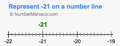 Representing negative 21 on the number line is a little more tricky. To locate -21, we start from 0 and go 21 to the left to locate -21 on the number line. Below is an illustration showing you where negative 21 is on a number line.