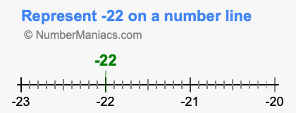 Representing negative 22 on the number line is a little more tricky. To locate -22, we start from 0 and go 22 to the left to locate -22 on the number line. Below is an illustration showing you where negative 22 is on a number line.