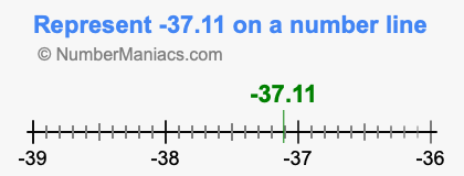 Representing negative 37.11 on the number line is a little more tricky. To locate -37.11, we start from 0 and go 37.11 to the left to locate -37.11 on the number line. Below is an illustration showing you where negative 37.11 is on a number line.