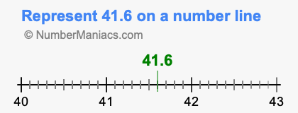 Below is an illustration showing you where 41.6 is located on a number line. It is located to the right of the 0 on the line, and as you can see, the numbers are increasing going from left to right. 41.6 is located 41.6 from 0.