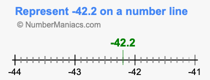Representing negative 42.2 on the number line is a little more tricky. To locate -42.2, we start from 0 and go 42.2 to the left to locate -42.2 on the number line. Below is an illustration showing you where negative 42.2 is on a number line.