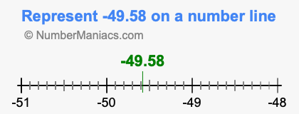 Representing negative 49.58 on the number line is a little more tricky. To locate -49.58, we start from 0 and go 49.58 to the left to locate -49.58 on the number line. Below is an illustration showing you where negative 49.58 is on a number line.