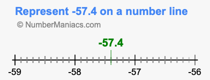 Representing negative 57.4 on the number line is a little more tricky. To locate -57.4, we start from 0 and go 57.4 to the left to locate -57.4 on the number line. Below is an illustration showing you where negative 57.4 is on a number line.