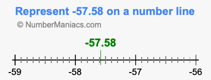 Representing negative 57.58 on the number line is a little more tricky. To locate -57.58, we start from 0 and go 57.58 to the left to locate -57.58 on the number line. Below is an illustration showing you where negative 57.58 is on a number line.