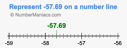 Representing negative 57.69 on the number line is a little more tricky. To locate -57.69, we start from 0 and go 57.69 to the left to locate -57.69 on the number line. Below is an illustration showing you where negative 57.69 is on a number line.