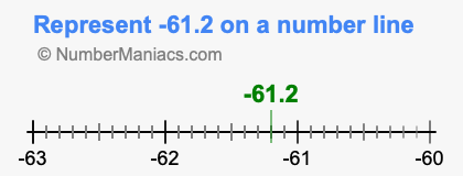 You have come to the right place if you need to locate 61.2 on a number line. Here we will show you how to represent 61.2 on a number line and how to represent negative 61.2 on a number line.