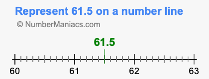 Below is an illustration showing you where 61.5 is located on a number line. It is located to the right of the 0 on the line, and as you can see, the numbers are increasing going from left to right. 61.5 is located 61.5 from 0.