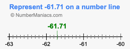 You have come to the right place if you need to locate 61.71 on a number line. Here we will show you how to represent 61.71 on a number line and how to represent negative 61.71 on a number line.