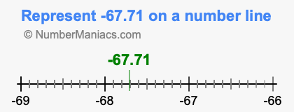 You have come to the right place if you need to locate 67.71 on a number line. Here we will show you how to represent 67.71 on a number line and how to represent negative 67.71 on a number line.