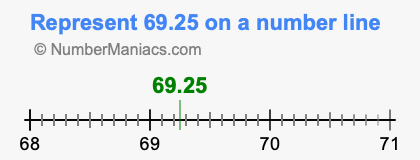 Below is an illustration showing you where 69.25 is located on a number line. It is located to the right of the 0 on the line, and as you can see, the numbers are increasing going from left to right. 69.25 is located 69.25 from 0.