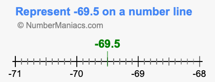 Representing negative 69.5 on the number line is a little more tricky. To locate -69.5, we start from 0 and go 69.5 to the left to locate -69.5 on the number line. Below is an illustration showing you where negative 69.5 is on a number line.