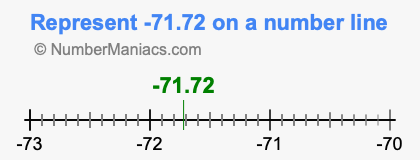 Representing negative 71.72 on the number line is a little more tricky. To locate -71.72, we start from 0 and go 71.72 to the left to locate -71.72 on the number line. Below is an illustration showing you where negative 71.72 is on a number line.