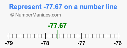You have come to the right place if you need to locate 77.67 on a number line. Here we will show you how to represent 77.67 on a number line and how to represent negative 77.67 on a number line.