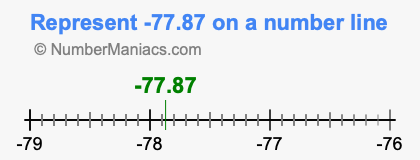 Representing negative 77.87 on the number line is a little more tricky. To locate -77.87, we start from 0 and go 77.87 to the left to locate -77.87 on the number line. Below is an illustration showing you where negative 77.87 is on a number line.