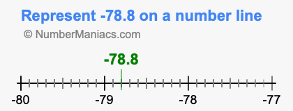 Representing negative 78.8 on the number line is a little more tricky. To locate -78.8, we start from 0 and go 78.8 to the left to locate -78.8 on the number line. Below is an illustration showing you where negative 78.8 is on a number line.