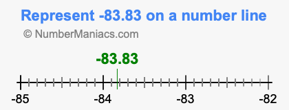 Representing negative 83.83 on the number line is a little more tricky. To locate -83.83, we start from 0 and go 83.83 to the left to locate -83.83 on the number line. Below is an illustration showing you where negative 83.83 is on a number line.