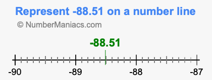 You have come to the right place if you need to locate 88.51 on a number line. Here we will show you how to represent 88.51 on a number line and how to represent negative 88.51 on a number line.