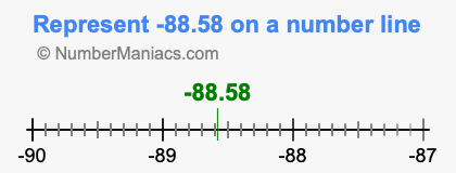You have come to the right place if you need to locate 88.58 on a number line. Here we will show you how to represent 88.58 on a number line and how to represent negative 88.58 on a number line.