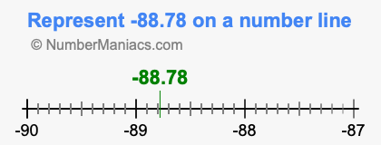 You have come to the right place if you need to locate 88.78 on a number line. Here we will show you how to represent 88.78 on a number line and how to represent negative 88.78 on a number line.