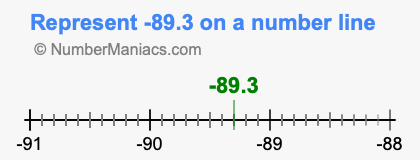 Representing negative 89.3 on the number line is a little more tricky. To locate -89.3, we start from 0 and go 89.3 to the left to locate -89.3 on the number line. Below is an illustration showing you where negative 89.3 is on a number line.
