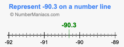 Representing negative 90.3 on the number line is a little more tricky. To locate -90.3, we start from 0 and go 90.3 to the left to locate -90.3 on the number line. Below is an illustration showing you where negative 90.3 is on a number line.
