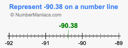 Representing negative 90.38 on the number line is a little more tricky. To locate -90.38, we start from 0 and go 90.38 to the left to locate -90.38 on the number line. Below is an illustration showing you where negative 90.38 is on a number line.