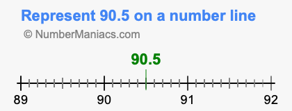 Below is an illustration showing you where 90.5 is located on a number line. It is located to the right of the 0 on the line, and as you can see, the numbers are increasing going from left to right. 90.5 is located 90.5 from 0.