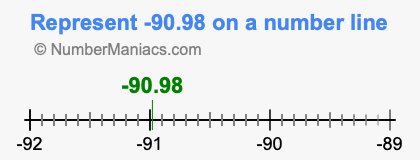 You have come to the right place if you need to locate 90.98 on a number line. Here we will show you how to represent 90.98 on a number line and how to represent negative 90.98 on a number line.