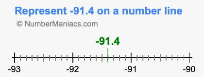 Representing negative 91.4 on the number line is a little more tricky. To locate -91.4, we start from 0 and go 91.4 to the left to locate -91.4 on the number line. Below is an illustration showing you where negative 91.4 is on a number line.