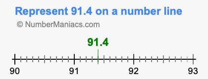 Below is an illustration showing you where 91.4 is located on a number line. It is located to the right of the 0 on the line, and as you can see, the numbers are increasing going from left to right. 91.4 is located 91.4 from 0.