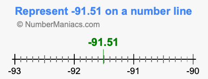 You have come to the right place if you need to locate 91.51 on a number line. Here we will show you how to represent 91.51 on a number line and how to represent negative 91.51 on a number line.