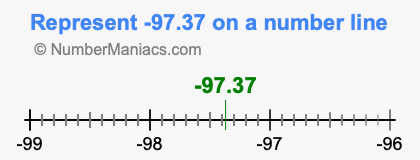 You have come to the right place if you need to locate 97.37 on a number line. Here we will show you how to represent 97.37 on a number line and how to represent negative 97.37 on a number line.