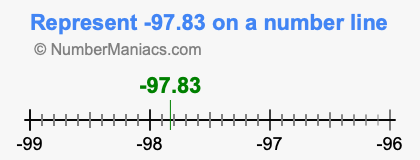 Representing negative 97.83 on the number line is a little more tricky. To locate -97.83, we start from 0 and go 97.83 to the left to locate -97.83 on the number line. Below is an illustration showing you where negative 97.83 is on a number line.