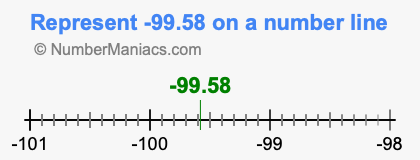 Representing negative 99.58 on the number line is a little more tricky. To locate -99.58, we start from 0 and go 99.58 to the left to locate -99.58 on the number line. Below is an illustration showing you where negative 99.58 is on a number line.